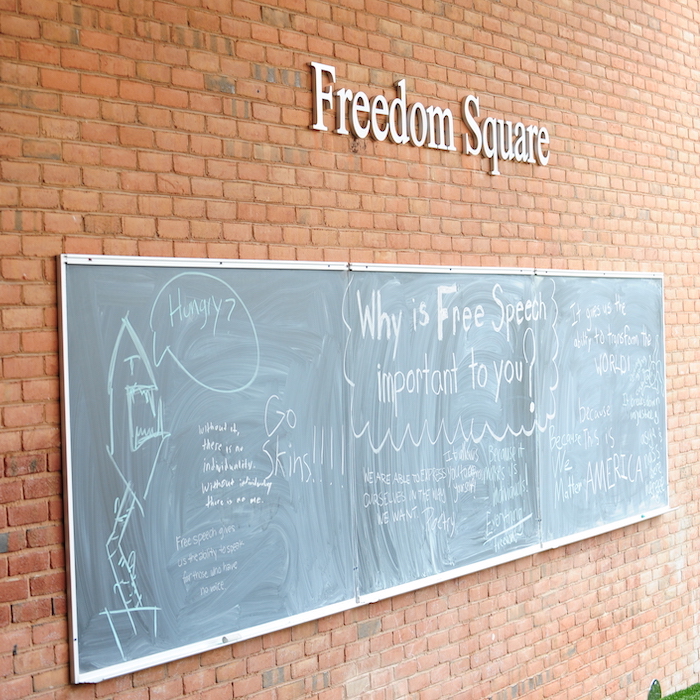 Visit Freedom Square to share your personal reflections on the chalkboards and explore opportunities to volunteer with the Office of Civic Engagement and Social Responsibility.