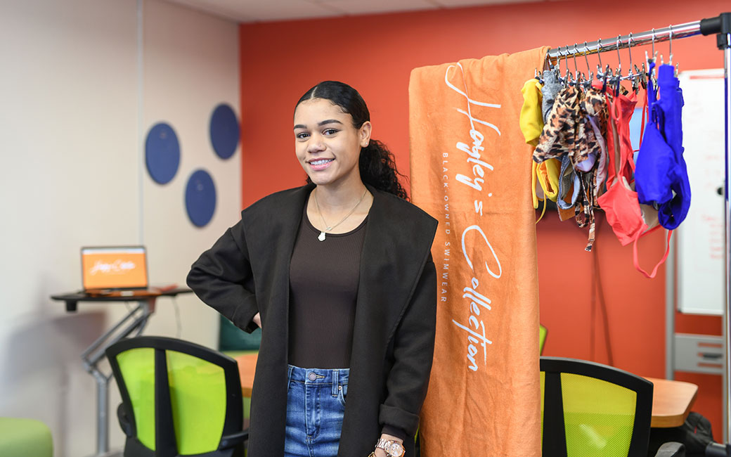 That confidence led her to start her first business, Hayley’s Collection, a swimwear line named in honor of her cousin, who lives with the rare genetic disorder Trisomy 18.