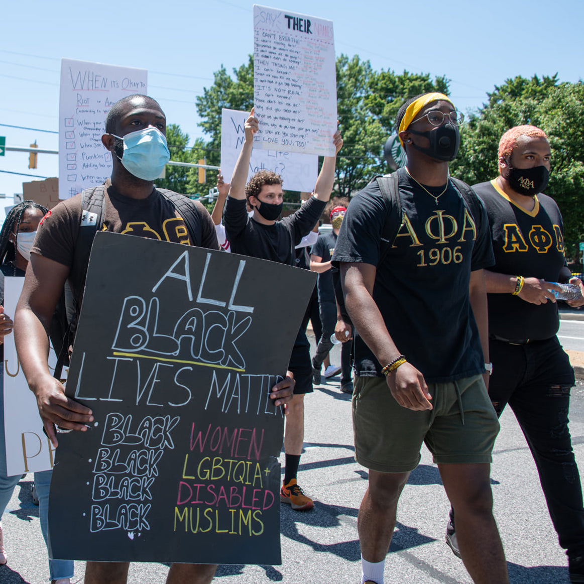 Hundreds of Towson University students, staff and faculty showed up on campus June 13, donning masks in the midst of the COVID-19 pandemic, to march for justice and empower Black lives at TU and around the country.