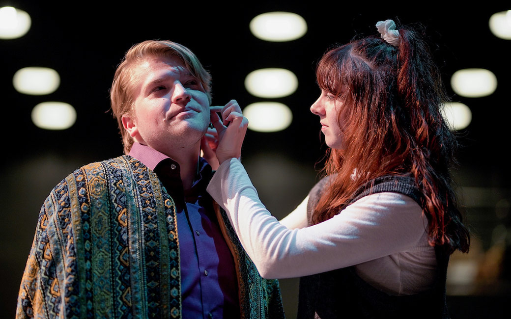 Leading up to the production, students conducted character analyses to better understand and portray their characters’ motivations and emotions. “We built our own character,” Balsley says. “I have two personalities because I'm Theseus in the evening and Egeus in the matinee shows. Shaping those two characters has been interesting at times because they're highly contrasting.”