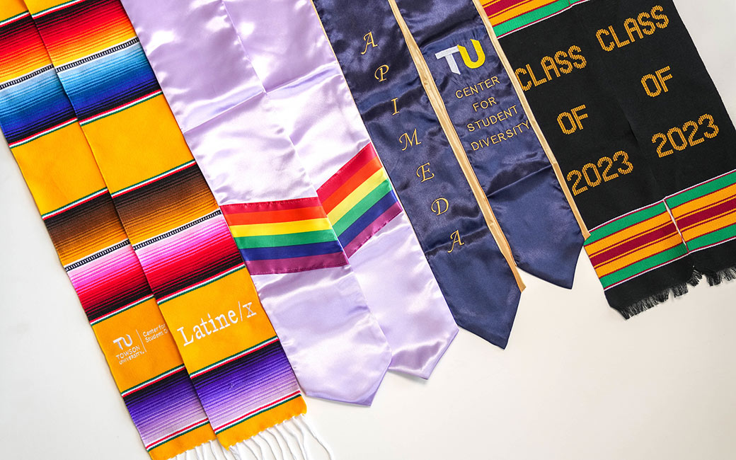 At Towson University’s spring Commencement, many graduating students will wear special stoles showcasing their affiliation and engagement with various groups on campus.