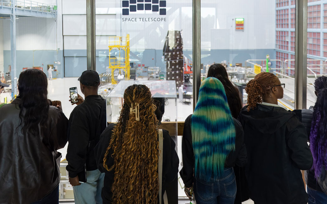 Students watched NASA employees test parts of the Nancy Grace Roman Space Telescope, took part in a panel discussion with women employees with backgrounds in environmental science, engineering and earth science education, and toured the campus and testing facilities.
