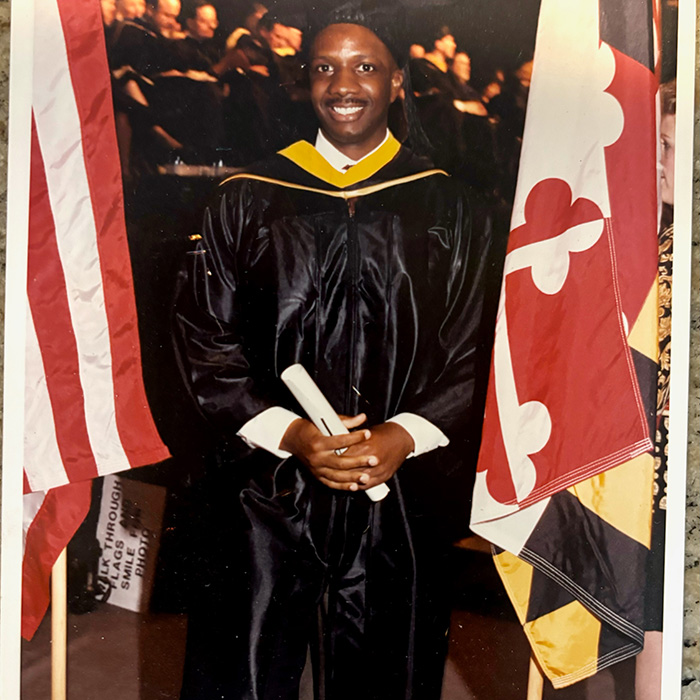 We just really bonded. I could be myself with her, and we could talk about anything. We were very supportive of each other too. I missed a semester at Towson because I was in the Marine Corps Reserve and was deployed during Desert Storm. I proposed right after I got called up, during my sophomore year. I surprised everyone, including Crystal and my parents. My proposal was asking her in my parents’ house right before a family dinner. If I could, I would do that over again. I’m glad she said yes.