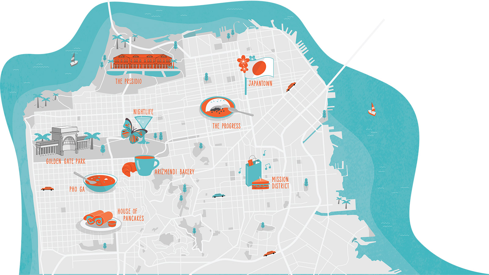 Lockhart works in the Fillmore neighborhood, which is directly connected to Japantown, the longest sustained Japanese enclave in the country. Another favorite neighborhood is the Mission District.