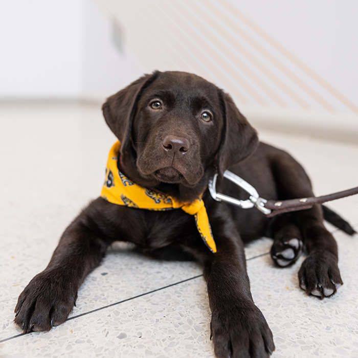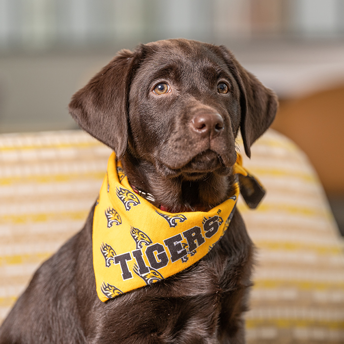 Meet Bruno, a chocolate lab and TU’s first comfort dog—a trained companion who provides cuddles and connection to students, faculty and staff.