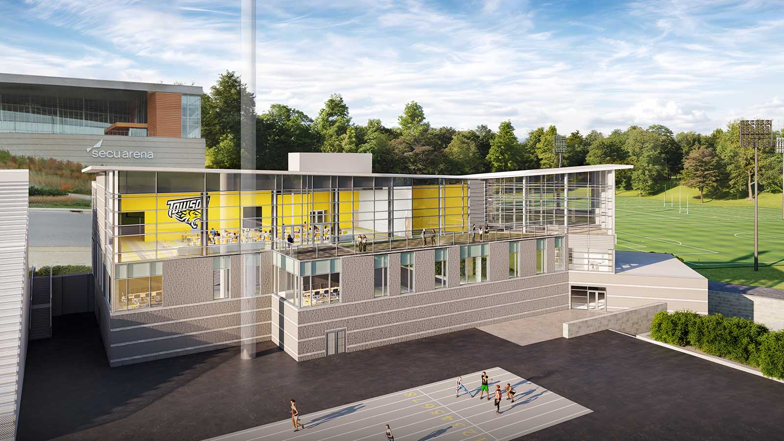 The second phase is focused on the Towson Center gymnasium, adding 15,000 square feet of indoor turf space and two practice courts for volleyball and basketball.