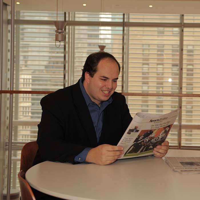 Brian Stelter at his internship. (Photos: Kanji Takeno)