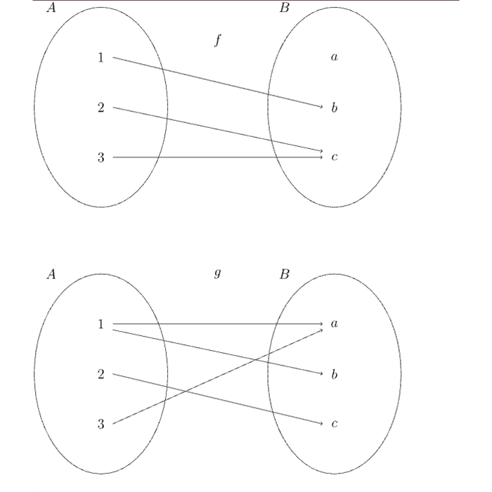 (1) A figure from "Abstract Algebra: Theory and Applications" by Thomas W. Judson that is an example of mappings and relations. (2) The braille translation of the textbook figure.