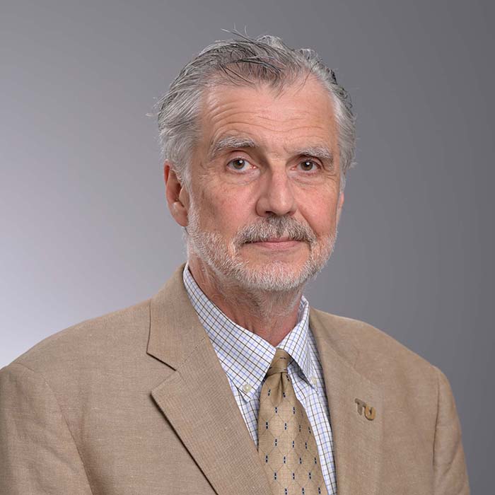 Two rows of 15 navy-colored baseball caps line the tops of the bookshelves in TU history professor Bob Rook’s office. They represent 16 years of his life.