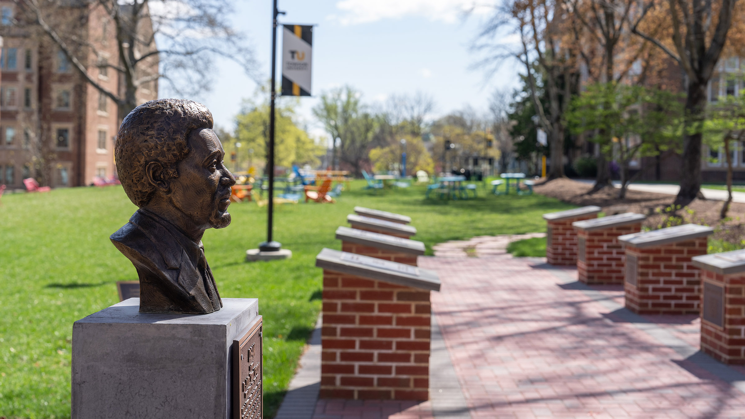 A bust of Julius Chapman in the Chapman Quad, dedicated in 2021. Chapman was TU’s first dean of minority affairs. (Photo: Lauren Castellana '13, '23)