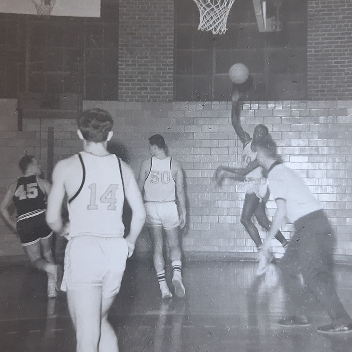 “I can’t remember negative experiences. I can remember on the road with the team. We would travel to Virginia, and we would travel to the Eastern Shore of Maryland. The team would stop for a meal, either going or coming home from a game. I remember the coach would get off the bus and go into the restaurant to find out if a Black person could eat there, and if the answer was ‘No,’ we would find another place to eat. The guys on the team were very frank, and their reaction could have been, ‘Oh, we’re bringing Newt’s meal out to the bus. Let’s go eat.’ But there was none of that, and I respect them for that.”