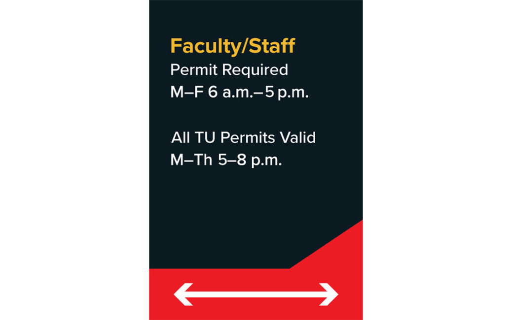 Please read parking signs carefully and park only in authorized areas. Examples of parking signs on TU's campus are below.