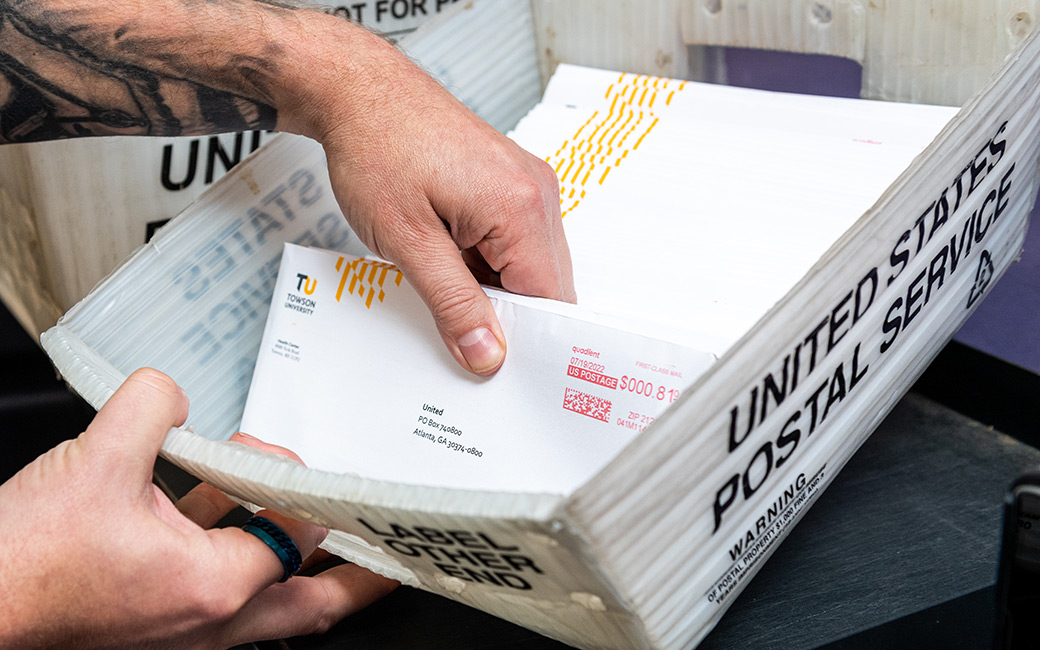 Campus departments that wish to request or modify mail service, please contact Postal Services at 410-704-2260 or