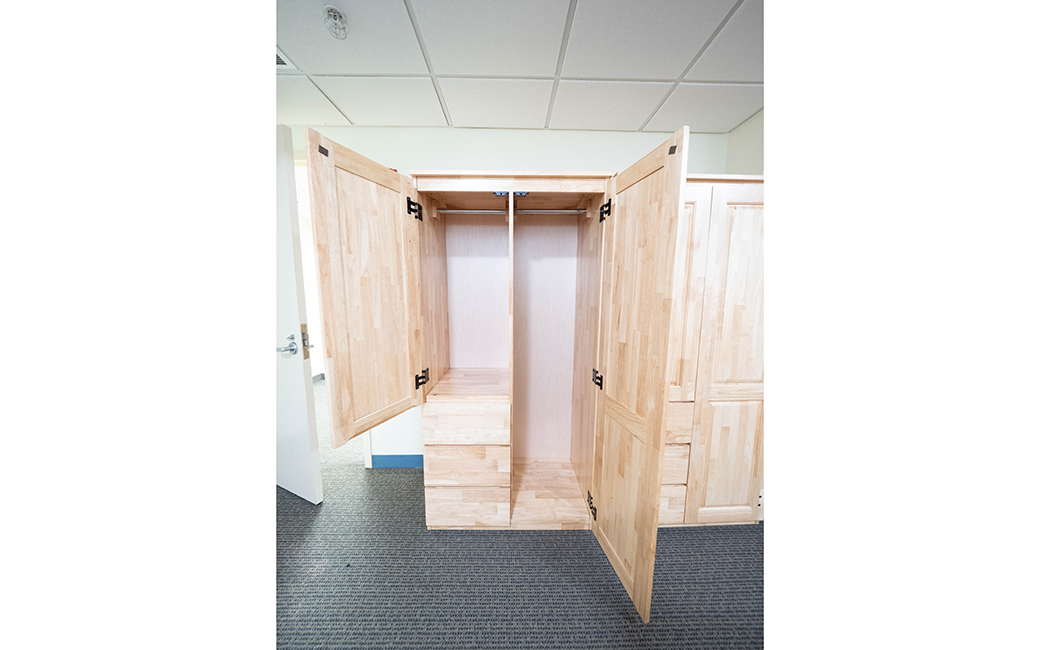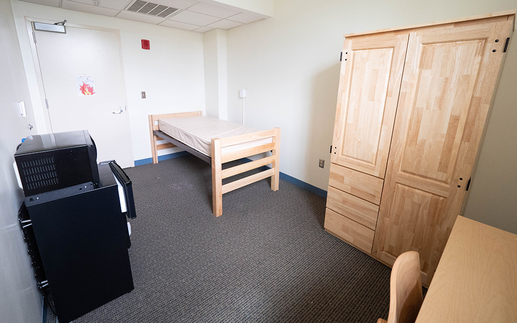 - Bedrooms are furnished with a twin extra-long bed, wardrobe, dresser, and desk/chair for each student in the room.